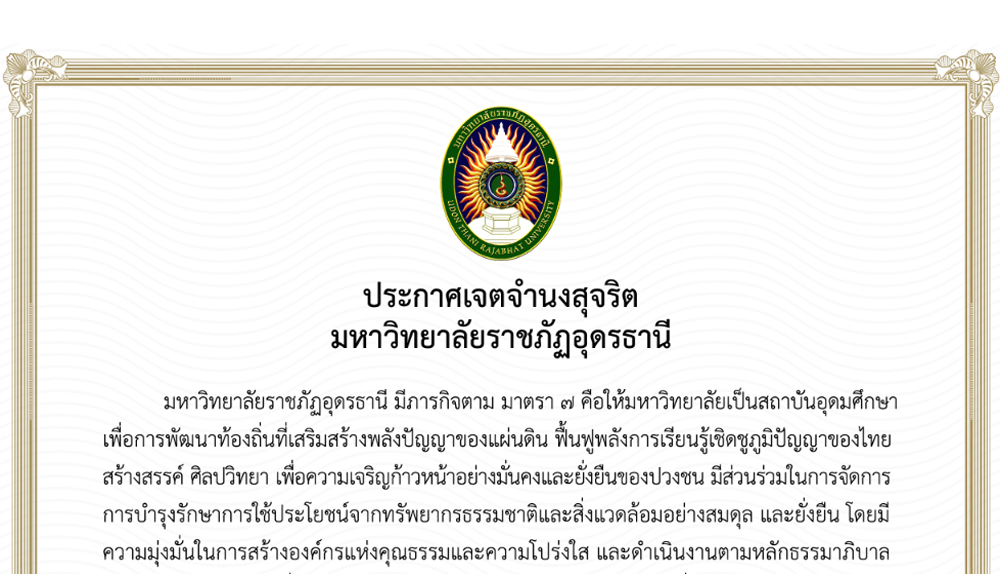 ประกาศเจตจำนงสุจริต มหาวิทยาลัยราชภัฏอุดรธานี